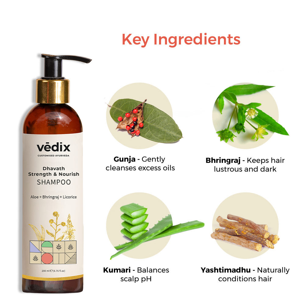 AYURVEDIC HAIR FALL CONTROL SHAMPOO: Reduces hair fall and hair breakage. Reconstructs hair from roots to tips, locking in moisture to make hair thick, shiny and voluminous.